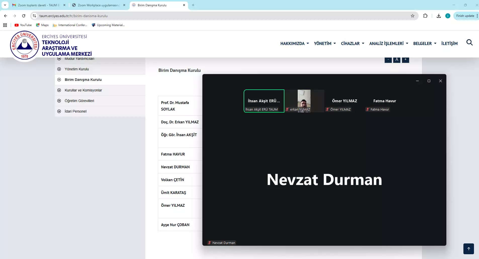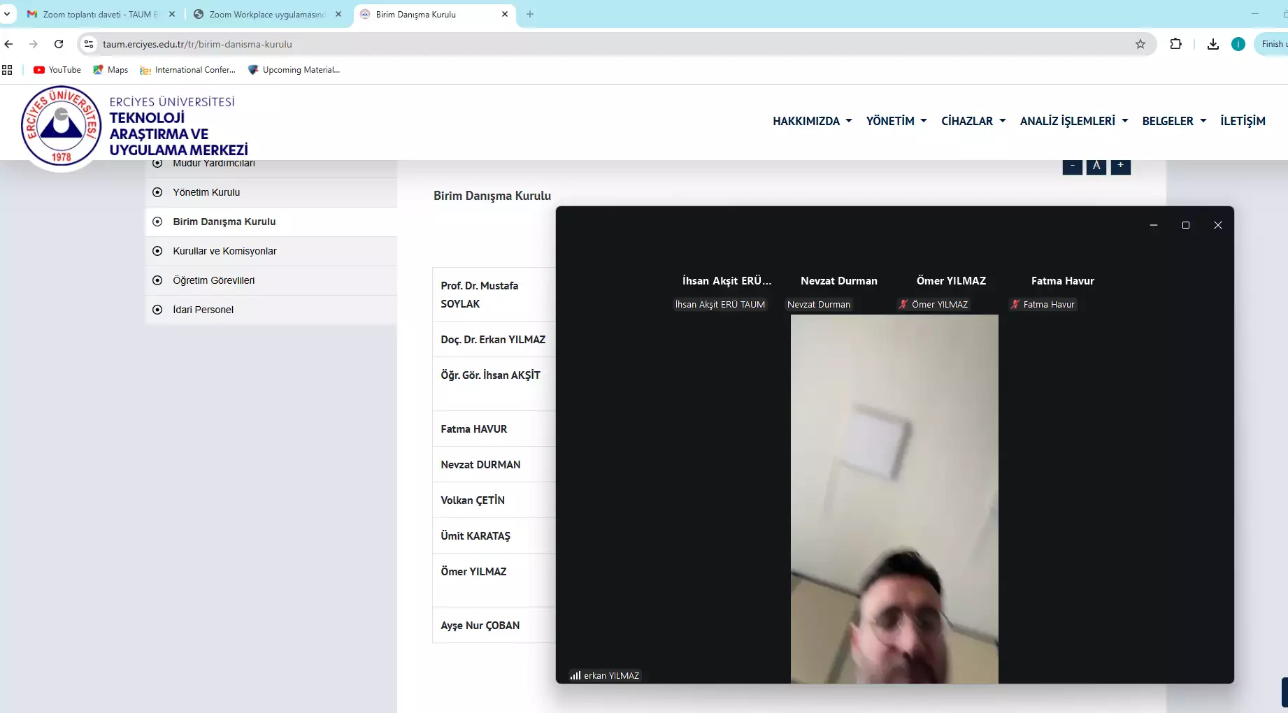 Erciyes Üniversitesi Teknoloji Araştırma ve Uygulama Merkezi Birim Danışma Kurulu Toplantısı Zoom Platformu Üzerinden Çevrim içi olarak 25.12.2025 tarihinde yapılmıştır.